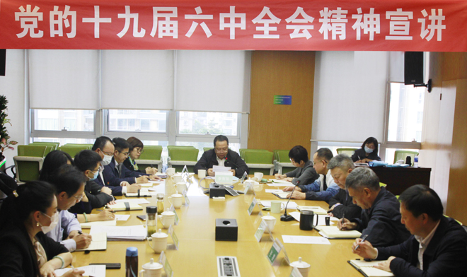 11月22日,集团公司党委副书记李有荣在太阳成tyc122cc为集团公司在深企业的广大党员干部宣讲党的十九届六中全会精神。