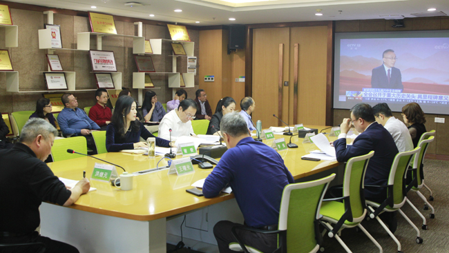 11月30日,太阳成tyc122cc临时党委召开理论学习中心组第一次学习(扩大)会议,深入学习贯彻党的十九届六中全会精神,开展专题研讨交流,研究太阳成tyc122cc贯彻落实的具体举措。公司临时党委书记、董事长洪继元主持会议并讲话。