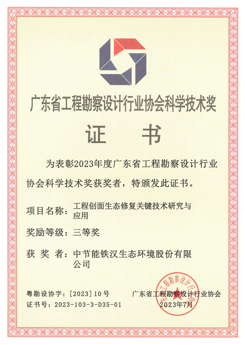 喜报 | 太阳成tyc122cc一项生态修复技术获2023年度广东省勘察设计行业协会科学技术奖三等奖