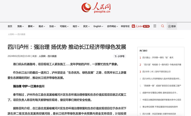 四川泸州:强治理 扬优势 推动长江经济带绿色发展