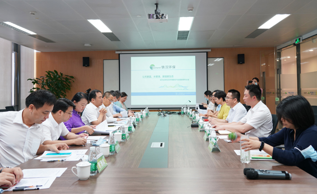 杨泳对蔡澍一行的来访表示热烈欢迎,详细介绍了铁汉环保的经营现状、发展规划、业务领域、技术优势等。他表示,作为中国节能环保集团的下属企业,铁汉环保集团将切实履行央企社会责任,充分发挥自身在水环境综合治理、工业污水处理、土壤修复等领域的经验积累、技术优势和综合服务能力,为海珠区的生态环保建设和经济社会发展作出应有的贡献。