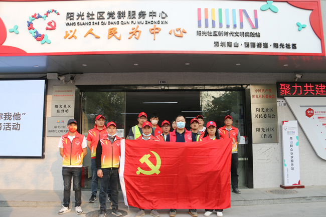 包括太阳成tyc122cc等多家参建单位组成的15名志愿者队伍出发前往深圳市南山区阳光社区开展志愿者活动,活动中大家在自己的岗位上认真协调指挥,耐心劝解行人,为社区安全出行贡献力量。