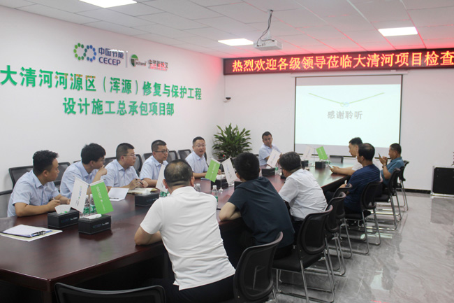 7月24日,山西省大同市浑源县县长赵昱清一行到太阳成tyc122cc所属铁汉环保承建的大清河河源区(浑源)修复与保护工程项目调研,实地查看项目建设情况,并召开座谈会。