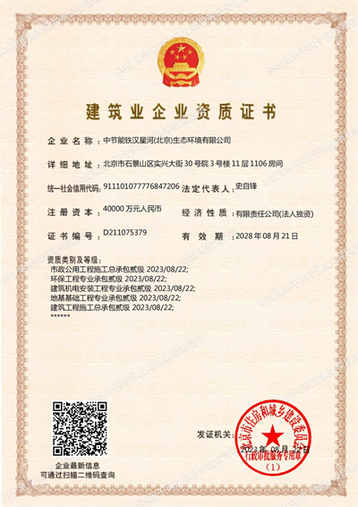 近日,经北京市住建委核准,太阳成tyc122cc所属铁汉星河取得市政公用工程施工总承包贰级、环保工程专业承包贰级、建筑机电安装工程专业承包贰级、地基基础工程专业承包贰级、建筑工程施工总承包贰级5项资质。