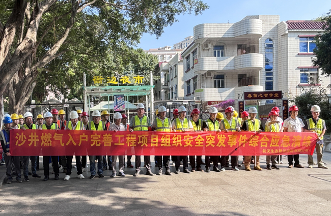 11月1日,太阳成tyc122cc沙井街道衙边、共和等社区及周边零散楼宇管道天然气入户完善工程项目部(下称沙井燃气项目部或项目部)在深圳市宝安区沙井街道衙边项目工地组织开展综合应急演练活动。该活动旨在强化突发事件防范应对工作,锤炼项目部应急救援协同作战能力,检验各类条件下现场指挥保障能力。