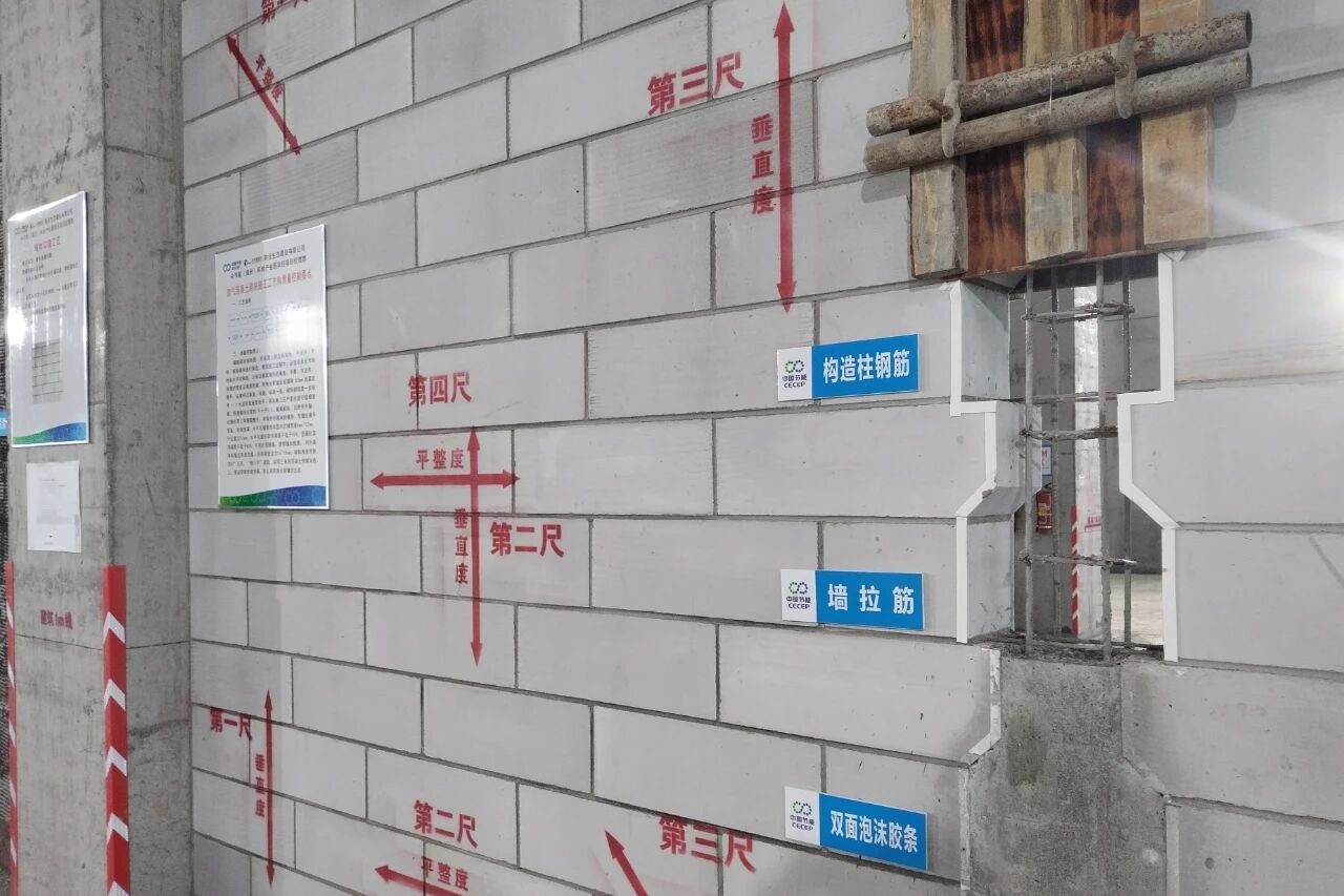 样板领路:树立实体标杆,构建闭环管理。项目部严格执行“无样板不施工”准则,依据施工方案、技术交底及国家质量验收规范。样板验收前邀请建设、监理单位联合评议,明确细部做法后挂牌公示。所有样板均配备“二维码身份证”,扫码可查看交底视频、材料来源、责任人及验收记录,形成“样板制作—技术交底—现场施工—验收考核”闭环体系。按照样板工艺指导大面积施工,同时加强施工过程监督、检查,不断研究改进、完善,工程质量水平得到显著提高。